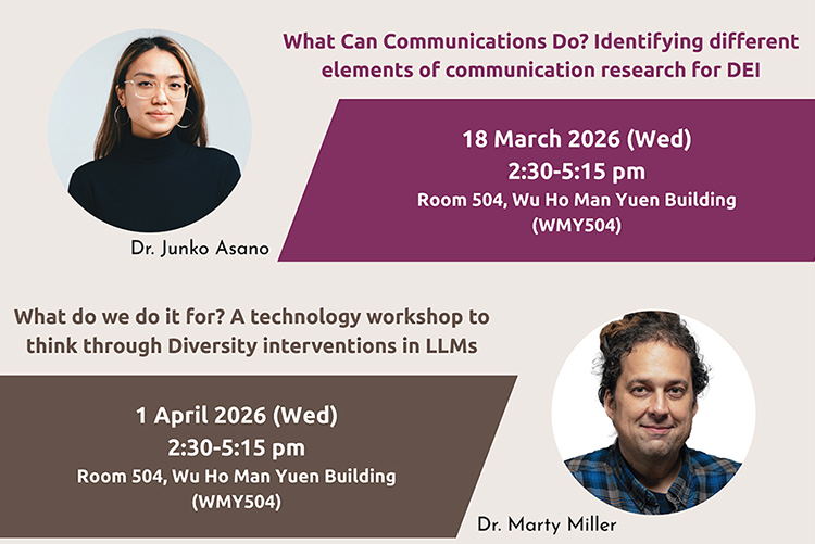 ***1st talk*** Topic: Intersectionality: Lens and Approaches Date: 28 January 2026 (Wed) Time: 2:30 - 5:15 pm Venue: WMY 504 Language: English Speaker: Dr. Sonia Wong Sonia Wong (PhD.)...