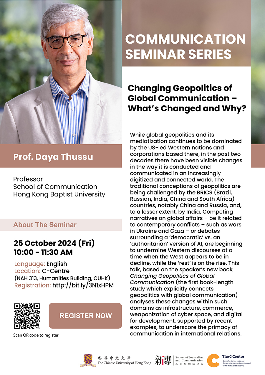 Communication Seminar Series: Public Talk by Prof. Daya Thussu