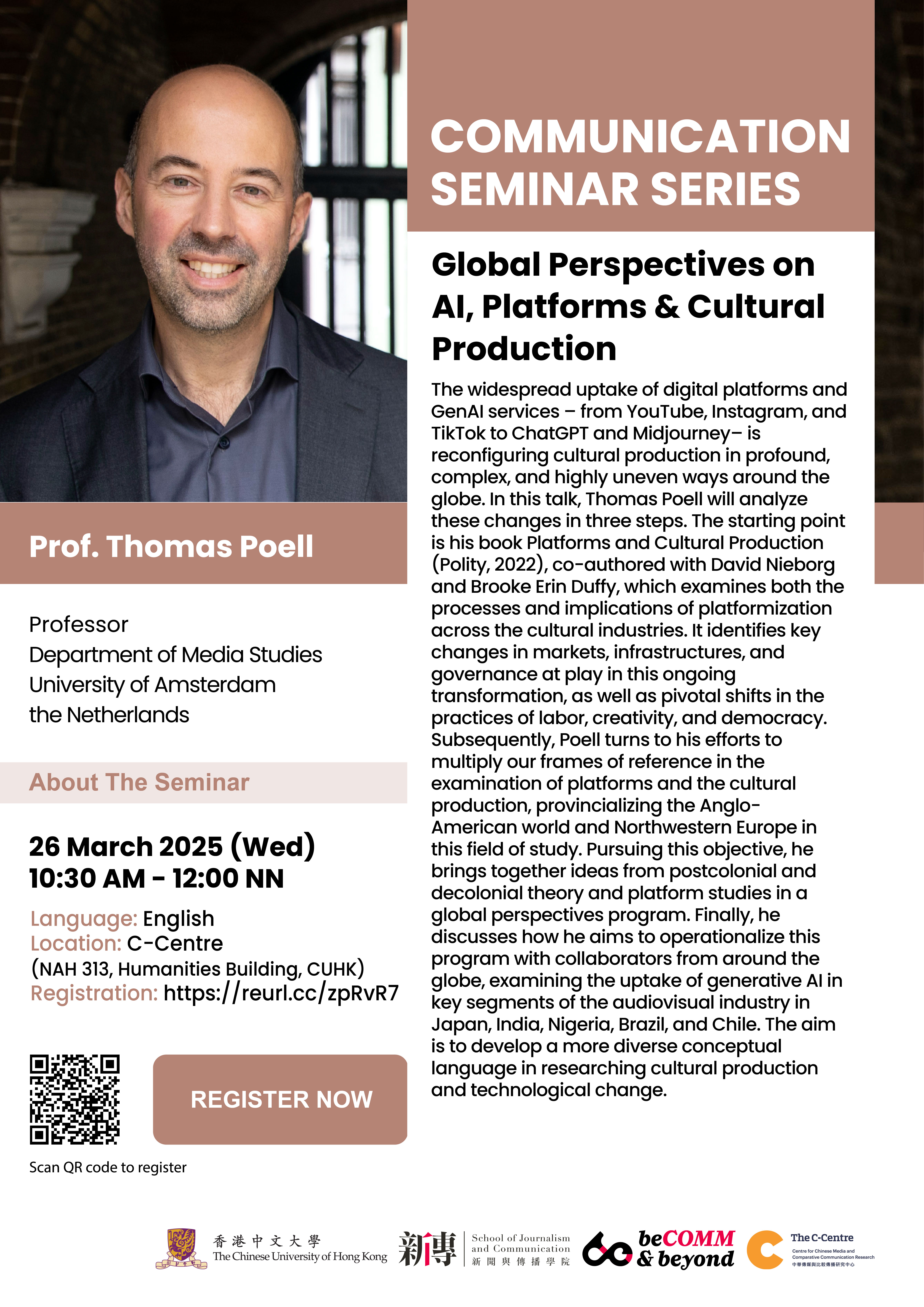 Communication Seminar Series: Public Talk by Prof. Thomas Poell
