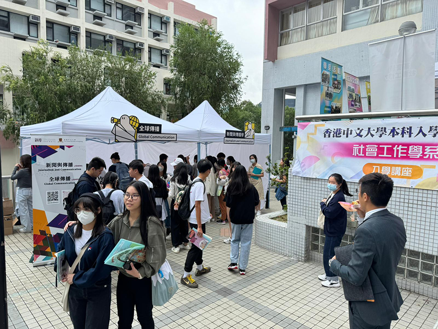 Seven admission talks were held by the School of Journalism and Communication on 21 October 2023, CUHK Information Day for Undergraduate Admissions. The talks were well attended by more than 600 secondary school students, teachers and parents. In the afternoon, the School arranged group visits to our state-of-the-art professional facilities, i.e. the TV Studio and Radio Studio. The visitors were excited to learn about the current media technology and professional knowledge of media production.