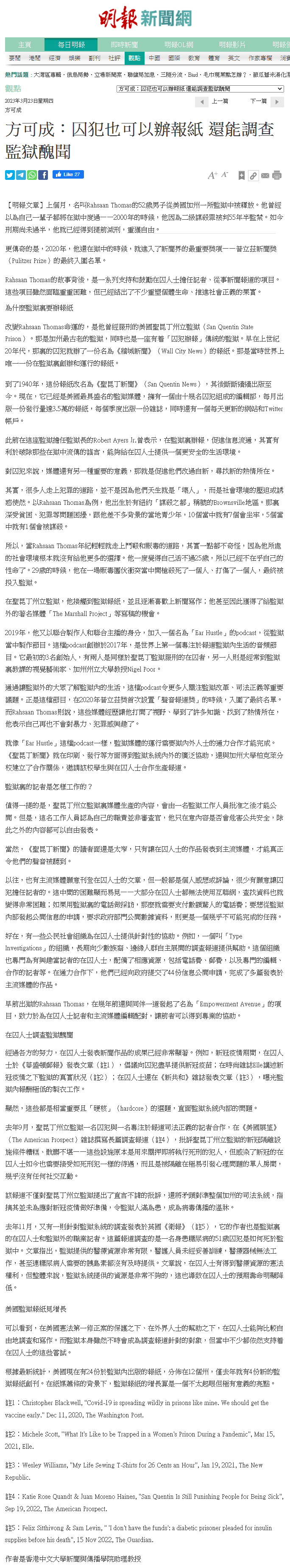 Rahsaan Thomas的故事背後,是一系列支持和鼓勵在囚人士擔任記者、從事新聞報道的項目。這些項目雖然面臨重重困難,但已經結出了不少重塑個體生命、推進社會正義的果實。