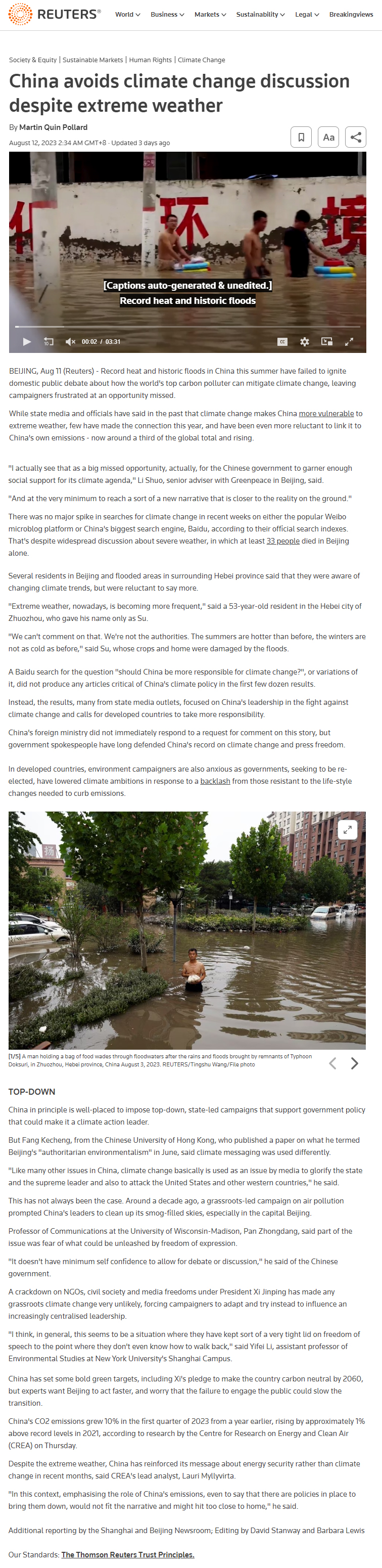 “Like many other issues in China, climate change basically is used as an issue by media to glorify the state and the supreme leader and also to attack the United States and other western countries,” he said.