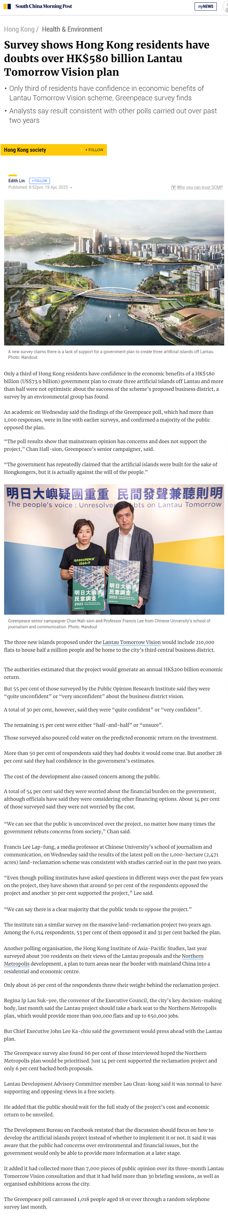 //“Even though polling institutes have asked questions in different ways over the past few years on the project, they have shown that around 50 per cent of the respondents opposed the project and another 30 per cent supported the project,” Lee said. //