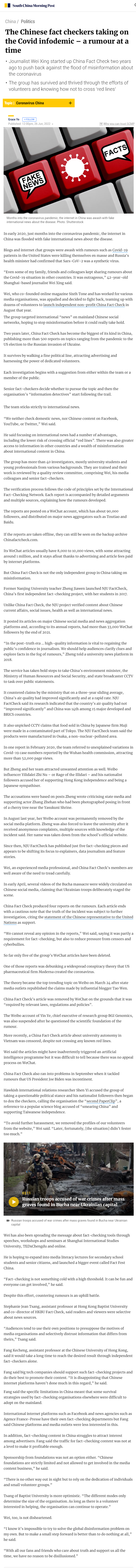 Fang said big tech companies should support such fact-checking projects and do their best to promote their content. “It is disappointing that Chinese internet platforms haven’t done much in this regard,” he said.