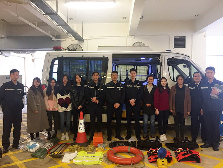 陳惜姿老師帶同5位同學參觀馬鞍山警署。 警察公共關係科傳媒關係組總督察甄瀚揚親自為同學講解警方多媒體平台的宣傳訊息及手法,並向我們講解警察分工,展示警車的裝備及介紹警隊日常工作,同學都獲益良多。 警方向同學展示警車裝備逐一介紹。 陳惜姿老師(左一)和同學參觀沙田馬鞍山警署。這次參觀得到甄瀚揚總...