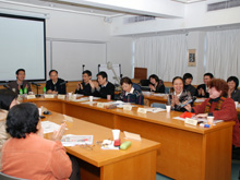 The visiting scholars used Room 315B&C as their working area and a venue for exchange during their stay. Computers, telephones and a printer were installed for them. The visiting scholars also had free accounts to access wireless internet service of the University. Massive academic exchange was carried out among the visiting scholars themselves. Prof. Jack Qiu, Prof. Joseph Chan, Prof. Donna Chu and Dr. Grace leung conducted a group session to provide further feedbacks on the papers of the Workshop participants.