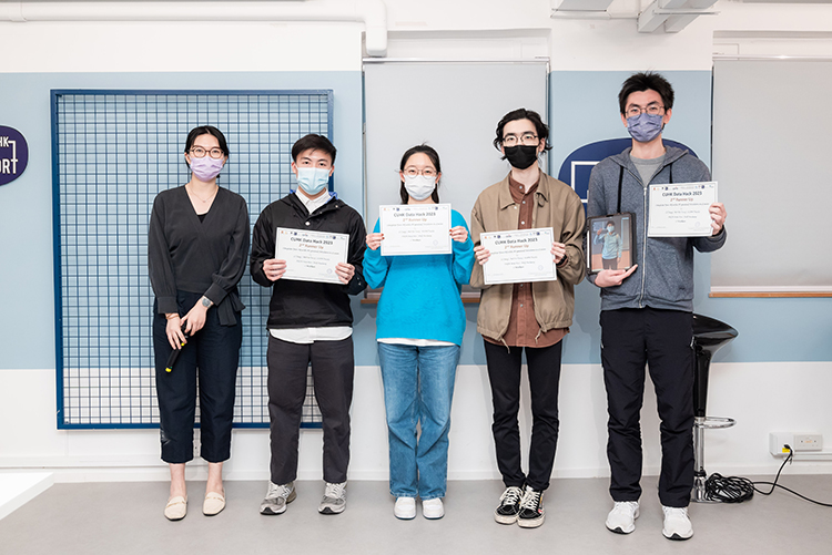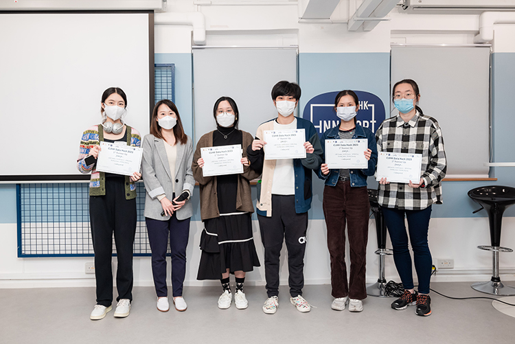 「Data Hack 2023」由香港中文大學圖書館舉辦,提供一系列Pre-hackathon工作坊,主題包括資料抓取、處理、視覺化和運用。不同的中大學生或員生組隊以數碼技能解決「後疫情時代」所面對之各項困難。本院六位新媒體理學碩士課程的學生組成之組別分別奪得亞軍及季軍。得獎詳情如下: