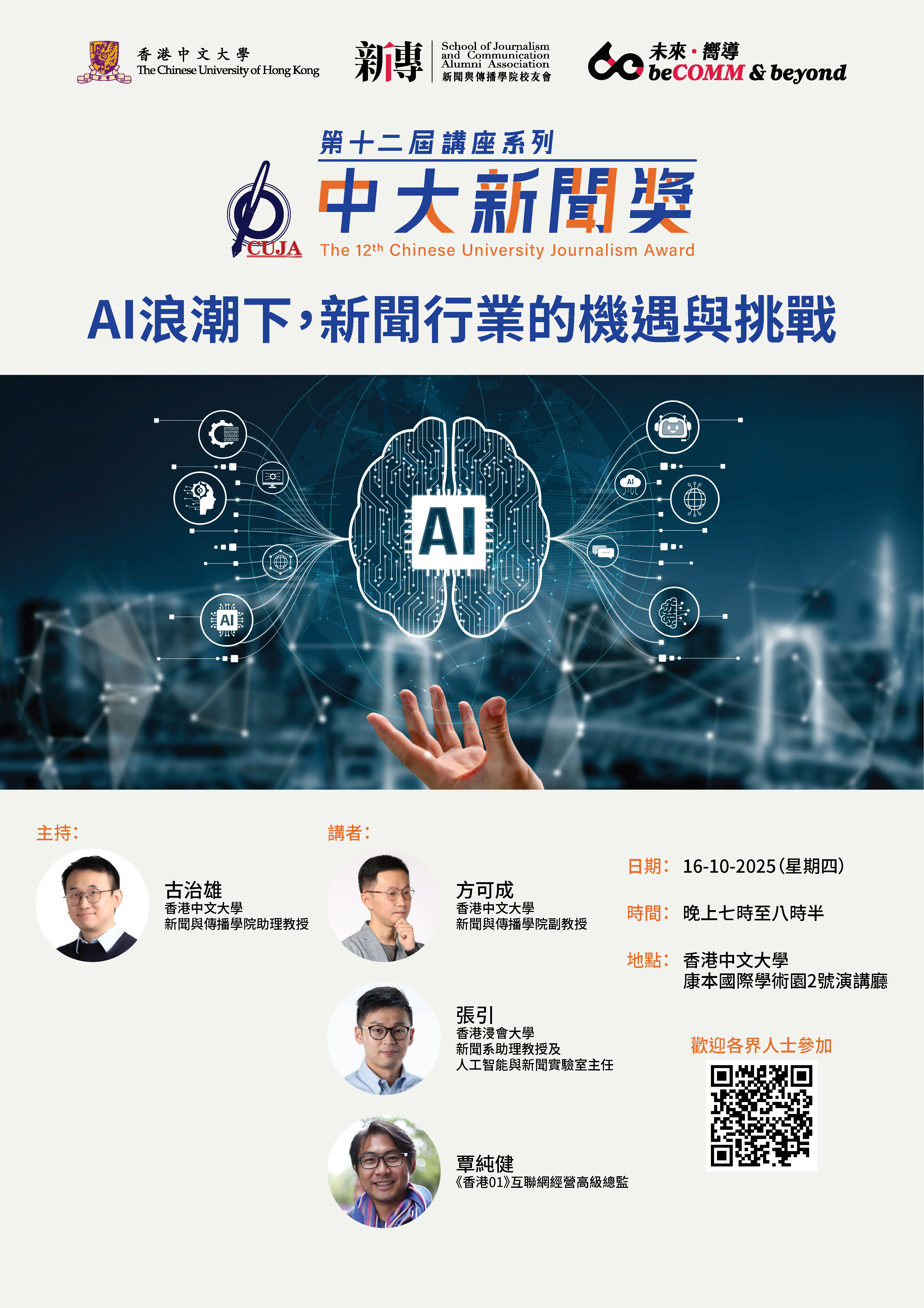 「中大新聞獎」講座系列2025 – AI浪潮下,新聞行業的機遇與挑戰
