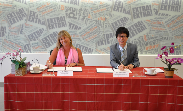合作備忘錄由本院院長馮應謙教授及基金會媒體培訓部董事Jo Weir女士簽署,香港新聞教育基金總幹事陳立志先生及本院多位教授亦有出席簽署儀式。