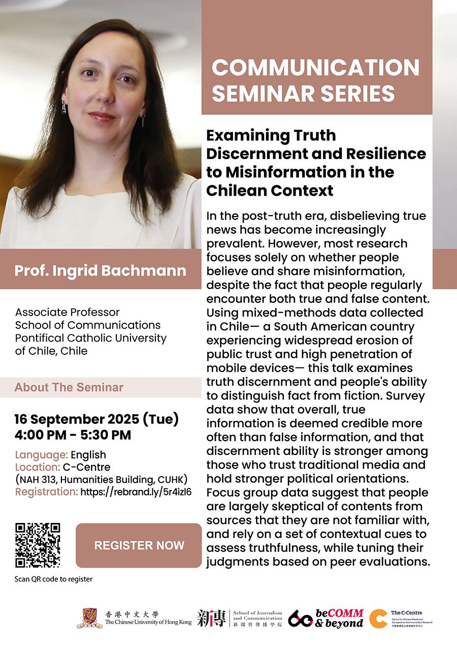 Communication Seminar Series: Public Talk by Prof. Ingrid Bachmann