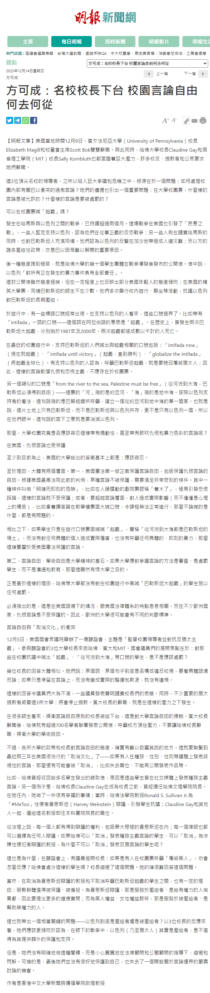 方可成:名校校長下台 校園言論自由何去何從