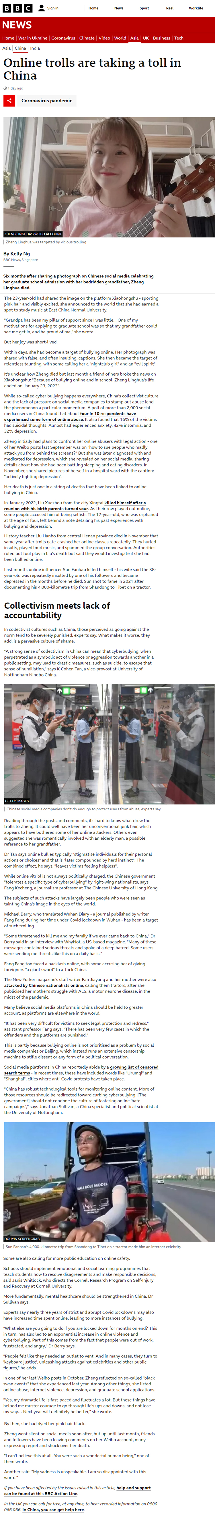 This is partly because bullying online is not prioritised as a problem by social media companies or Beijing, which instead runs an extensive censorship machine to stifle dissent or any form of a political conversation…